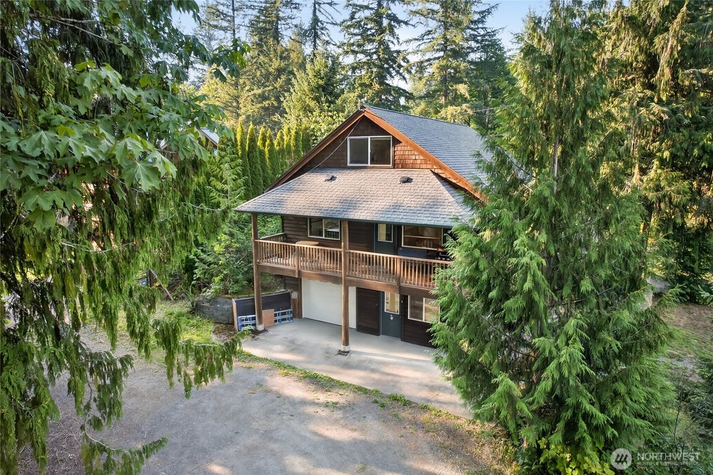 Discover this inviting three-level Mt.cabin that perfectly captures Glacier living! Ground floor features a covered patio, hot tub, EV charger, two-car garage, bonus Rec room with a second kitchenette & full bath—ideal for guests or a private retreat. Main level boasts an open kitchen, dining area, great room, cozy gas fireplace, primary suite, second bedroom, full guest bath, and hardwood floors throughout. Enjoy stunning Mt. Baker views from the covered balcony off the living room or relax on the spacious deck off the kitchen with built-in seating. Upstairs, a versatile loft provides extra entertainment or workspace. Well-maintained home with ample parking, natural light, and scenic views. Perfect vacation retreat or year-round residence.