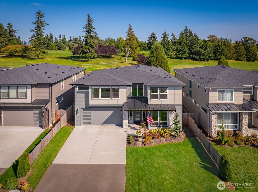 Contemporary Golf Course Living overlooking Legion Golf Course w/ sweeping views & sunsets, this modern home pairs style w/ convenience just minutes to Everett Marina, dining, parks, I-5, & Hwy 2. Inside, soaring ceilings & open spaces include main floor bedroom w/ nearby ¾ bath, ideal for guests or multigenerational living. Kitchen features oversized island, quartz counters, soft-close cabinetry, & walk-in pantry, flowing to dining & living areas w/ a cozy fireplace. Upstairs, a bonus rm opens to golf course deck, the primary suite offers a 5-piece bath, walk-in closet, & deck access. Three more bedrooms, a full bath, & laundry complete the level. Outside: covered patio, RV/boat parking, & direct access to Legion Park and Grand Ave Park.