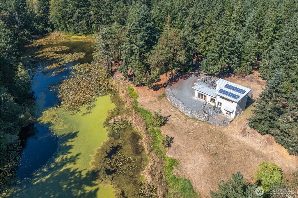 Discover your San Juan Island sanctuary, enjoy the beauty of surrounding wildlife, and embrace the tranquility of the 3-acre pond in this idyllic retreat. Expansive windows invite nature inside while radiant floor heating and solar panels add comfort and sustainability. At the heart of the home, the kitchen and living areas flow together to create a welcoming space for everyday living and the entertaining kitchen features a large island and abundant prep space, ideal for gatherings. Established fruit trees and pond-side retreats enhance the property’s charm. A standalone garage/shop adds potential. Nestled on a sprawling 10-acre property, this home offers the perfect blend of modern comfort in a peaceful natural setting.
