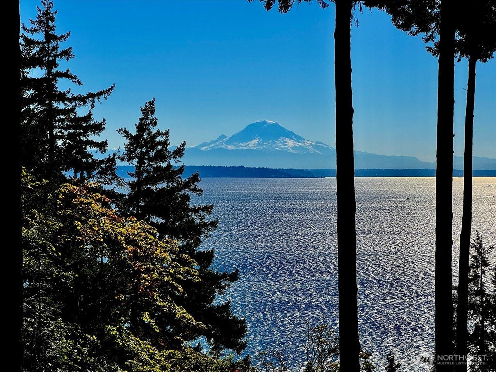 The drama, beauty and magnetism of the Puget Sound and Mt Rainier are on full display from every thoughtfully designed living space of this NW contemporary home. Enter to a stunning two-story living room with soaring floor-to-ceiling windows that blur the line between elegant interiors and lush nature. Chef's kitchen and dining room open to a covered patio for year-round indoor/outdoor dining/entertaining. Two main floor water view bedrooms include the primary suite with a 5-piece luxe bath. The lower level 3rd bedroom is currently a sitting room and study. A separate 712 sf studio guest suite includes a 3/4 bath and living room. In-floor radiant heat, a luxurious hot tub and oversized garage complete the home. Welcome to your island haven!