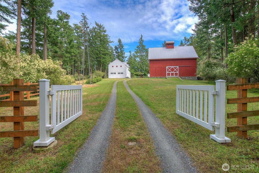Incredible location near the Orcas ferry landing w/community dock & beach at Double Cove! This stunning turn-key home & property is situated on 6 private, sunny acres & features a gorgeous 3 bed/3.5 bath contemporary home, 1 bed/1bath guest house & delightful studio/barn for additional guest space. Enter on one of the loveliest roads on the Island, Old Farm Road. The artful combination of spaces is perfect for daily living & entertaining. Multiple work spaces include large well-designed shop w/bath, barn/shop & boat house. Finishes include: Radiant heat floor, quartz counters, gourmet kitchen with Sub-Zero & Wolf appliances, custom hardwood & tile floors, shared well. Some furnishings & vintage tractor included. Rock Island Fiber installed.