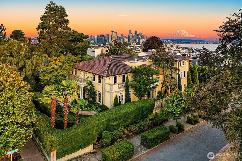 A rare offering with a coveted corner-lot setting on Queen Anne hill’s iconic West Highland Drive, this extraordinary Italianate-style mansion harmoniously presents modern luxury living with Old World elegance. Extensively remodeled in 2003, this exquisite property has been lovingly maintained & improved to perfection. Step through the ornate, wrought-iron gated entry into enchanting courtyards, balustrade-lined terraces & captivating mature landscaping. Italian renaissance-inspired interiors feature grand entertaining spaces, soaring ceilings, Venetian plaster walls, Fortuny fixtures & radiant-heated marble flooring. Rooftop deck w/ spectacular sweeping view of Seattle skyline, Mt. Rainier & Elliott Bay. Elevator, A/C, EV charging & more!