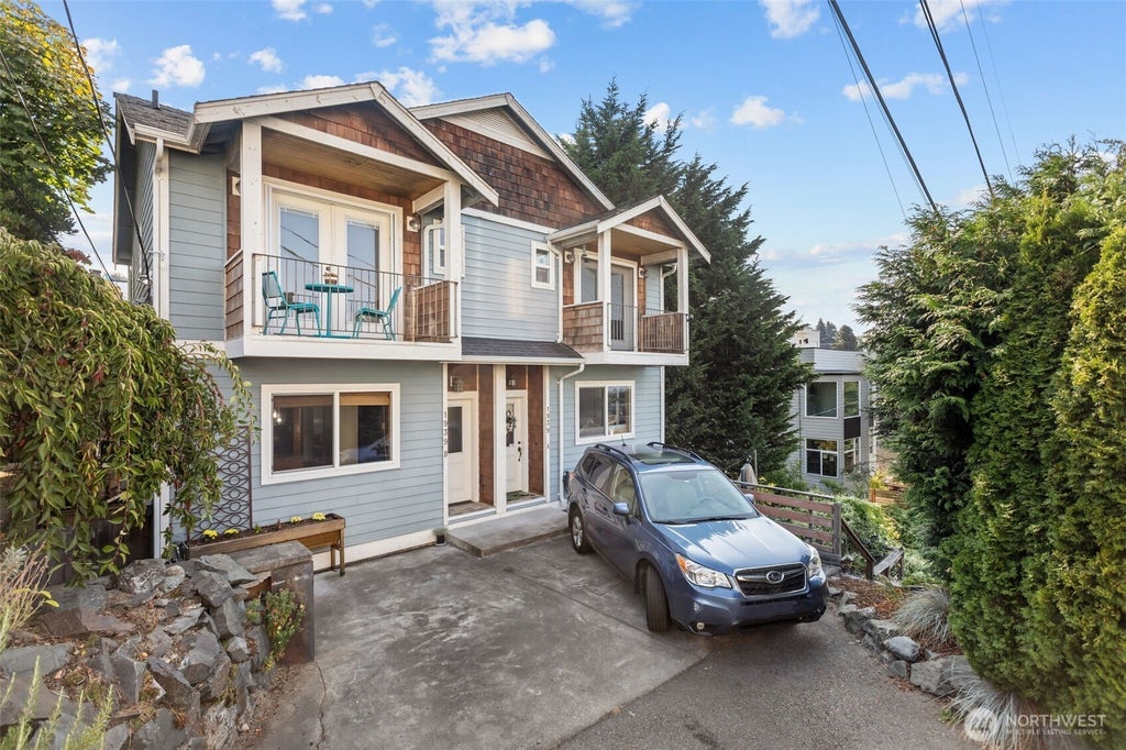 Stunning West Queen Anne townhome with sweeping views of Elliott Bay, Puget Sound & the Olympics. Privately tucked off 10th W. at the end of a quiet dead-end alley, this light-filled retreat blends comfort & convenience. The top floor serves as a spacious primary suite or flexible living area with ensuite bath, walk in closet, & large deck overlooking Elliot Bay. The main floor boasts a modern chefs kitchen with Subzero refrigerator & open flex spaces for dining or work. Downstairs, a serene bedroom opens to a private patio ideal for BBQs. Parking & garden are alley-side. Walkscore® 81 with restaurants, shopping & direct bus to downtown nearby. No HOA, no rental cap—rare opportunity in one of Seattle’s most sought-after neighborhoods.