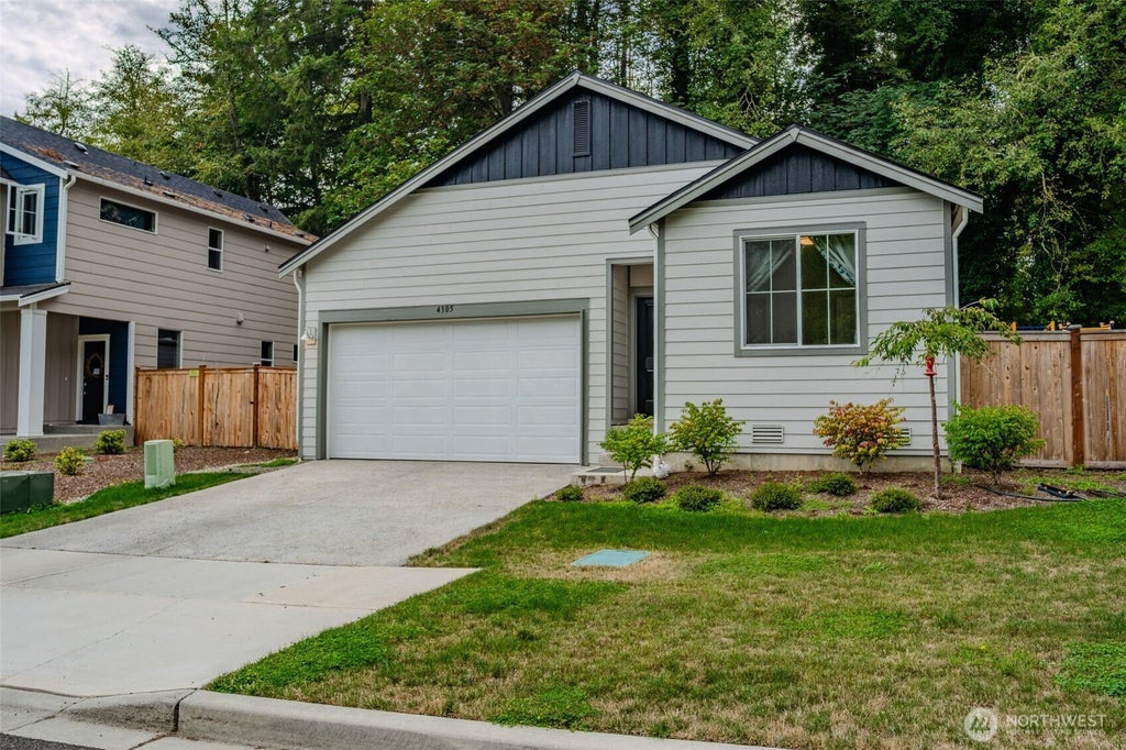 SHORT SALE. Skip the wait on new construction and settle into this nearly new 2023 rambler in a prime Olympia location. Set at the end of a quiet cul de sac, it offers privacy with a fully fenced backyard bordered by nature, plus access to a neighborhood playground and dog park just steps away. Inside you’ll love the open design with luxury vinyl plank floors, quartz counters, tall soft-close cabinets, tile in the primary bath, and smart home features for everyday ease. Every appliance is included, from washer/dryer to the new refrigerator. Stay comfortable all year with efficient mini-splits and individual bedroom heaters. Move-in ready, stylishly finished, and perfectly placed, this home is built to impress and ready for its new owner.