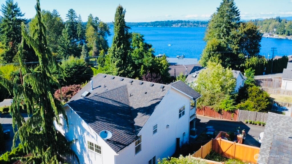 Enjoy stunning lake views from your front deck & living room. Other Lake-view homes are currently listed over $900K. Located just minutes from schools, beaches, parks, restaurants & Costco. This home offers comfort & peaceful living w/ unmatched convenience. The open-concept main level is filled w/ natural lights & features stainless steel appliances, a cozy fireplace & central A/C , a heat pump. The main-level primary suite includes a walk-in closet & a private en-suite bathroom. Downstairs, you'll find two additional bedrooms & a full bath—ideal for guests or home office. The fully fenced backyard is beautifully lit with landscape lighting & the spacious two-car garage includes built-in cabinets. Don't miss this gem—it has it all!