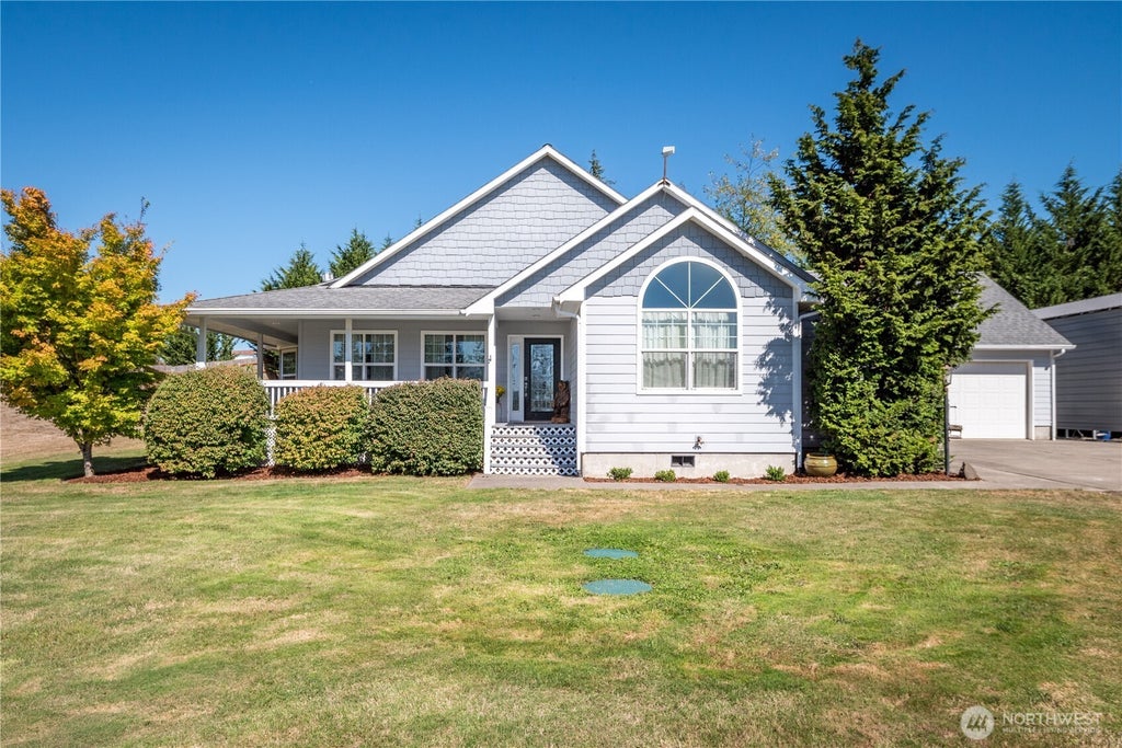 Discover this stunning home featuring a wrap-around covered deck with stylish lighting, set on 2.010 acres of serene landscape.With 2,451 sq ft of living space,this home offers three spacious bedrooms and two full baths. The inviting living room boasts a gas fireplace, while the kitchen impresses with granite countertops, a large island with a cooktop,soft-close drawers, and beautiful white cabinetry. Enjoy double ovens, a walk-in pantry, and tile flooring throughout the kitchen.The primary suite features LVP flooring, a walk-in closet, and a luxurious double-headed tile shower with a heated tile floor.Outside a 30 x 60 shop with a commercial air compressor and car hoist awaits, along with an RV shed equipped with Electrical septic hookups.