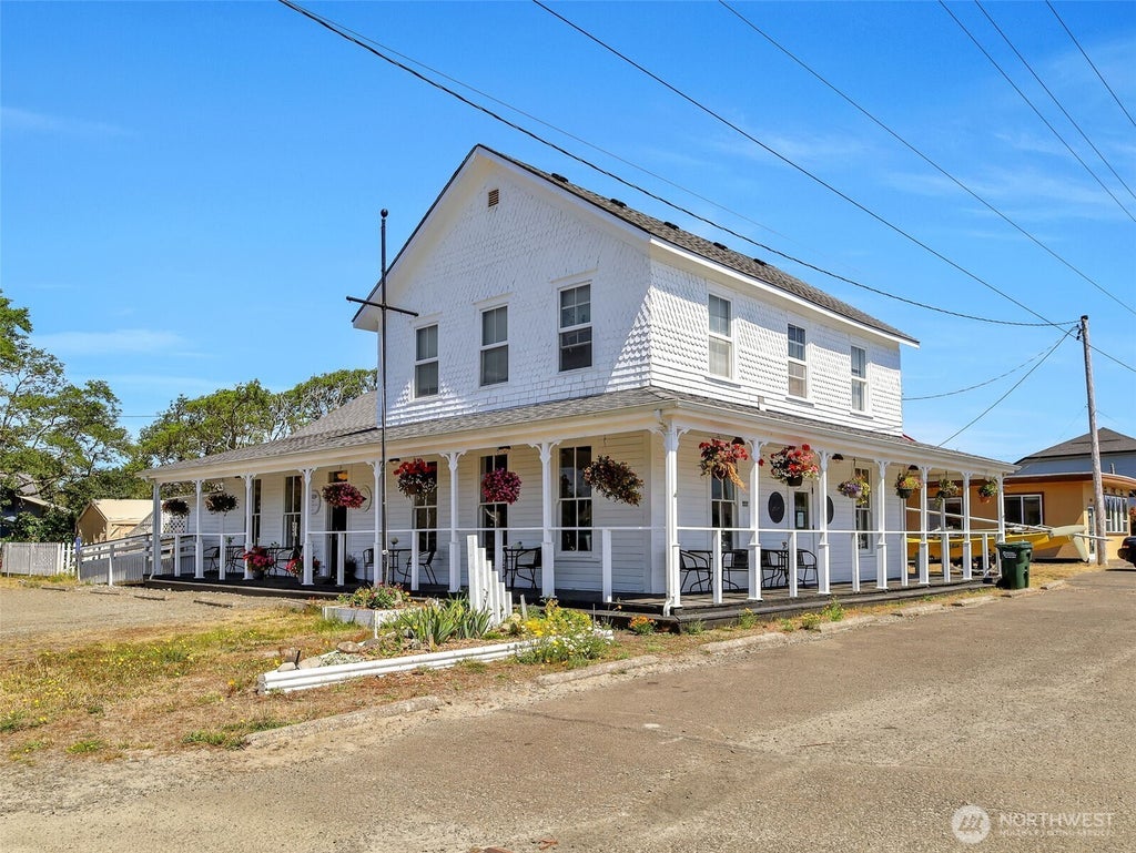 Step into a piece of Ocean Park history. Known locally as the Taylor Hotel and later the Shoalwater Bay Club, this community landmark has long been a gathering space. It offers fresh potential with mixed-use zoning and a recently renovated two-bedroom apartment above. The apartment enjoys a private entry, an open and light-filled design, and views toward the ocean. Pacific County permits allow for short-term rental use, giving flexibility as an income stream or as a live-work residence.On the main level, the property’s wraparound porch and central Bay Avenue frontage create strong visibility. Perfect for varied uses including dining, retail, gallery, or office space.