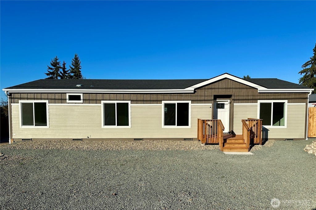 Brand-New 3-Bedroom 2-Bathroom Home in convenient East Port Angeles location. Bright and open modern layout with 1547 square feet of living space. Well-insulated and energy efficient. Tall ceilings, lots of windows, and cabinet storage. Two family rooms. All stainless-steel appliances and farm style kitchen sink. Primary suite with walk-in closet, additional storage, and dual bath sinks. Outside, enjoy peekaboo views of Olympic Mountains and Strait of Juan de Fuca! Well-landscaped with low maintenance decorative and driveway rock. Lots of parking space. Fully fenced rear and side yards. Back yard is cleared and ready for your ideas - with enough space for a small shop and large garden. Ready for move in and for your enjoyment!