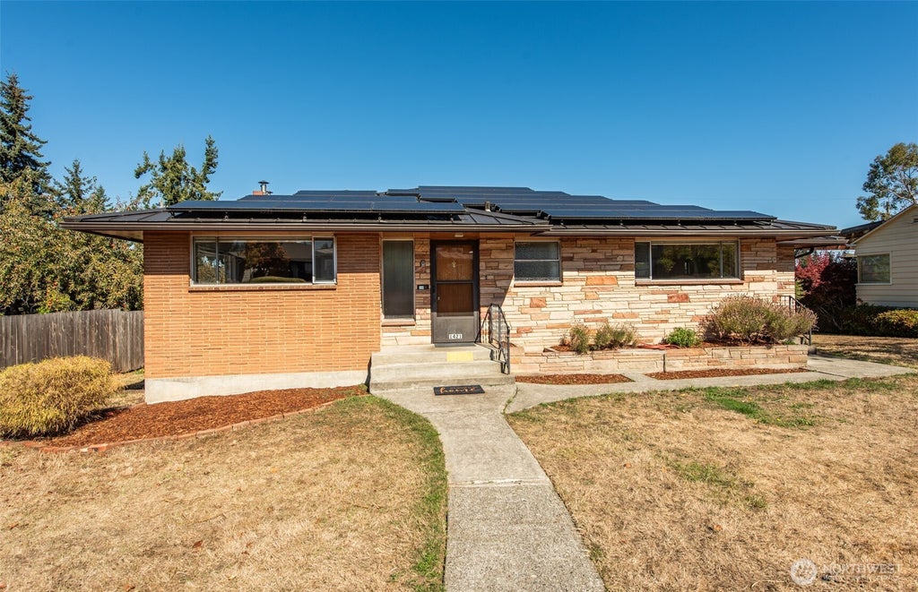 Beautiful home on oversized lot with mountain views. Built in 1955, this one-story home with a daylight basement has a Midcentury Modern feel. Spacious 2,248 square feet of bright living space. Main level includes 2 bedrooms + 1 full bathroom, large living room, dining room and kitchen with eating space. Lower level offers a second living room, office that could be used as a 3rd bedroom, 3/4 bathroom, sauna & soaking tub. Each level equipped with a ductless heat pump and wood stove. One car attached garage has tons of extra space for hobbies & storage, includes x3 220 outlets. Metal roof with solar panels offers longevity and a reduced utility bill. Private backyard has a patio, storage house and off-street parking. Great central location!