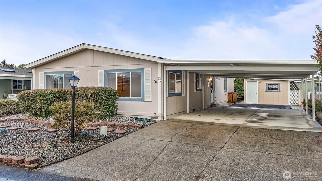 Welcome Home! A beautiful 3 bed, 2 bath home in the desirable 55+ community of Mountain View Estates! Enjoy an open-concept living, dining, and kitchen area, perfect for entertaining your guests. The spacious primary bedroom includes an en-suite and walk-in closet. Two additional bedrooms and a full bath offer room for guests. Outside, unwind on the patio, overlooking the beautiful views of Mount Rainier! Features include a laundry room, central A/C, 2-car carport with a sizeable storage unit. Come experience comfort and convenience of this community, located in the Small Town of Orting with all life's necessities just walking distance from home! Ask Listing Broker for information on Lending.
