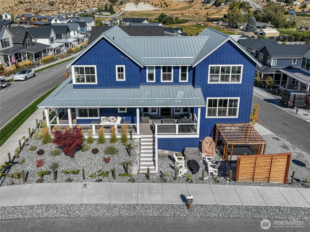 Beautifully appointed four bedroom home at the Lookout on a corner lot with lake and mountain views. The wrap around covered porch takes advantage of morning and afternoon sunshine. Open living area and main floor bedroom with an indoor/outdoor gas fireplace and double French doors that lead to the covered sitting area. Situated only a block and a half away from the pool, the Lookout has excellent year around rental history. Quartz countertops throughout and ample dining room area takes advantage of the views. Primary bedroom and 2 additional ensuite bedrooms make this a desirable floor plan for your vacation destination or vacation rental. Large garage and excellent rental history. Fully turnkey for your enjoyment. Hot tub and gas fire pit