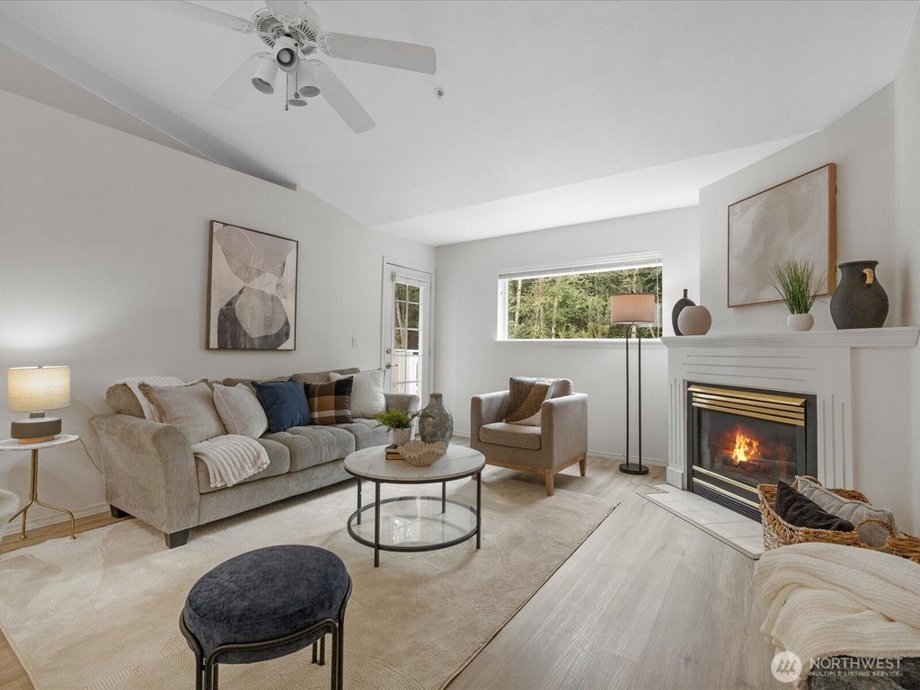 Enjoy the Tree Top and Mountain Views from Your Top Floor 2BR/2BA updated Condo! Enter your Peaceful Oasis to find Vaulted Ceilings with Fans, Cozy Gas FP, Kitchen w/Bar Seating, Full Size W/D, Updated Bathrooms featuring New Vanities with Quartz Counters (2022), & New LVP (2022) in LR, DR, Kitchen,& Bathrooms! Retire to your Primary BR with En-Suite BA, WIC, Custom Black-Out Shade, & Slider to your Serene Balcony which overlooks a Private Greenbelt for your Morning Coffee! Sunny Secondary BR with oversized Mirrored Closet Doors & Large Picture Window to Peek-a-Boo Mountain views! Private Garage w/space for Storage. Well-Maintained Keaton's Landing is in Mukilteo SD & convenient to I-5, Boeing, and Shopping! This Home has it All!