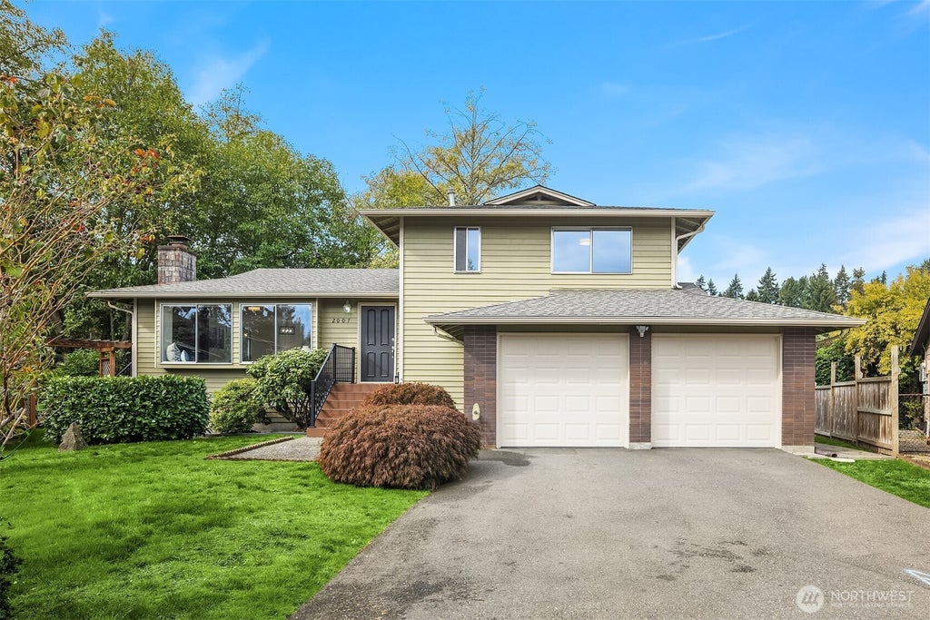 Tucked at the end of an inviting cul-de-sac, this contemporary tri-level offers space, updates & convenience. Light-filled living spaces feature a brick fireplace & a substantial bay window that opens wide to bring the outdoors in. Sliding glass doors extend the dining area to a spacious deck overlooking the backyard, perfect for gatherings. The sweet kitchen enjoys garden views & easy flow to the main living area & outdoor deck. Upstairs offers a primary suite with ¾ bath & 2 additional bedrooms with a shared full bath. The lower level provides flexible space with laundry & outdoor access. Two-car garage & beveled cedar siding. Close to parks, schools, groceries, I-5 & upcoming light rail. This home is move-in ready & pre-inspected!