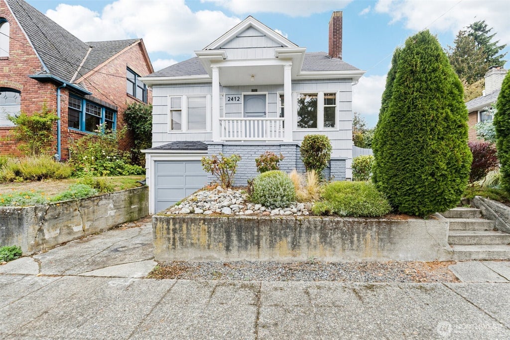 Situated in the heart of Loyal Heights, this original 4 BR, 1.75 bath craftsman exudes classic Seattle charm. The front entrance opens into the living room, complete with original hardwood floors and a wood burning hearth. Beyond is the light filled dining room, large enough to accommodate a full size dining table. Classic kitchen w/ breakfast nook and access to the large rear patio. Downstairs is the large, partially finished bsmt, 4th BR and attached garage. On the 2nd floor is the primary suite w/attached bathroom and 3rd BR w/ large closet and additional storage space. Step outside into the fully fenced yard and planting beds. One additional off street parking space, proximity to transit, parks, schools and downtown Ballard.