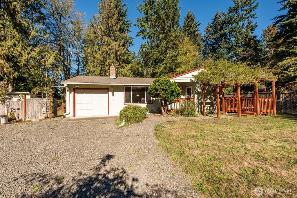 Cozy and well-kept home with two bedrooms and two bathrooms. Large living room with wood burning fireplace and big windows to keep things bright. Efficient kitchen and eating area with sliding glass door to the deck. Beautiful hardwood floors throughout most of the home. Updated bathrooms. Utility room with exterior door. Roof (30 year comp), windows and sliding doors all replaced about 8 years ago. 1-car attached garage. Large, fenced garden area and fruit trees. Ample parking in driveway. Backyard is partially fenced with garden shed for tools and storage. Lot 2 with house sits on 1/2 an acre and Lot 3 to the west is 1/2 acre and included in sale. Peace and privacy await!