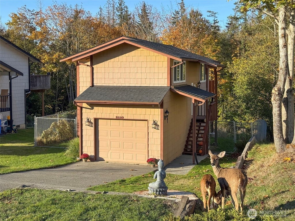 Efficient split level in cozy neighborhood. 3BR, 1 & 3/4 BA split level features brand new wood deck & fenced back yard overlooking green belt.Attached garage great for convenient parking or storage. New roof installed in 2024, new deck 2025! This turn key home is just minutes away from the entranceto Olympic National Park.